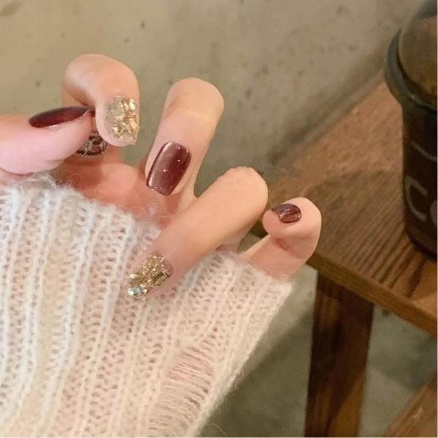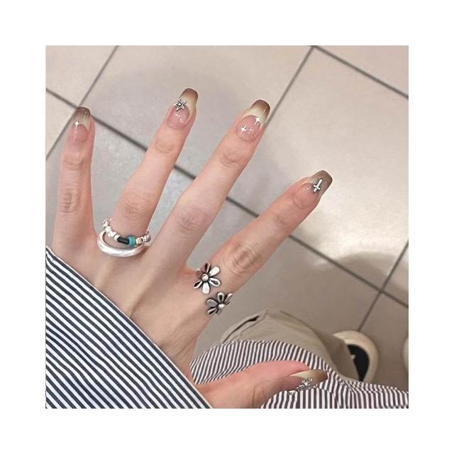 梵花 ins清冷感高級灰美甲穿戴甲中長冰透漸變腮紅帶鑽顯白色假指甲片指甲貼