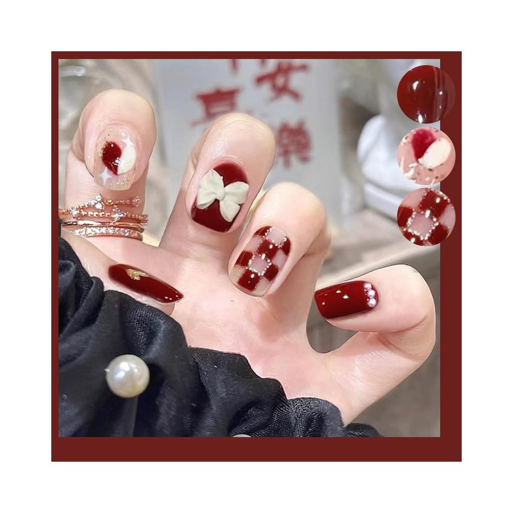 梵花 秋冬季假指甲貼片可拆式美甲成品穿戴甲重複使用ins風新娘高級感