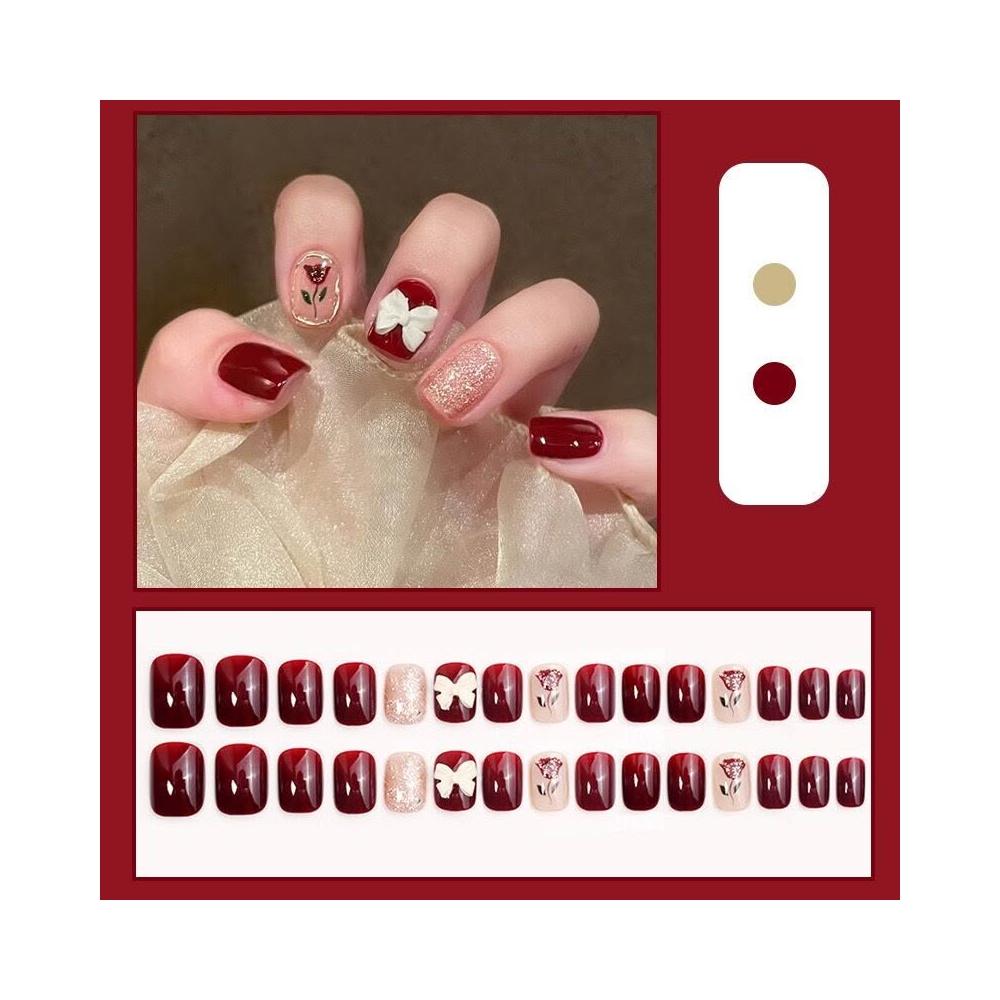 梵花 秋冬季假指甲貼片可拆式美甲成品穿戴甲重複使用ins風新娘高級感