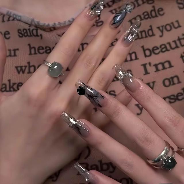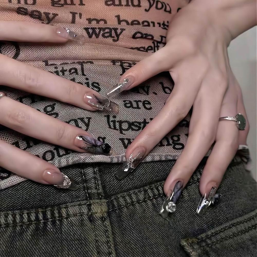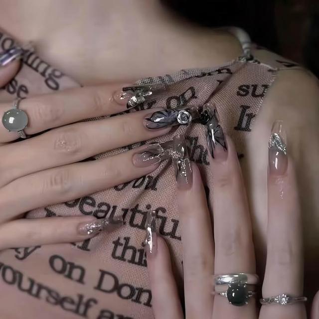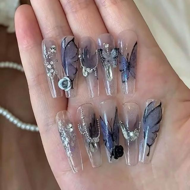 梵花 手工穿戴甲辣妹水彩蝴蝶甜酷風爆閃玫瑰輕奢顯白高級指甲貼