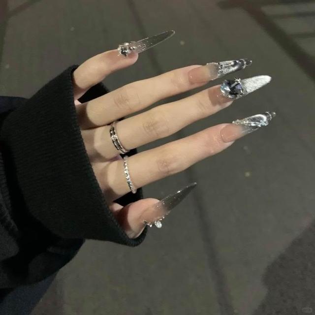 梵花 辣妹貓眼美甲滿鑽黑巧純手工穿戴高級春夏氣質顯白甜酷暗黑ins指甲貼