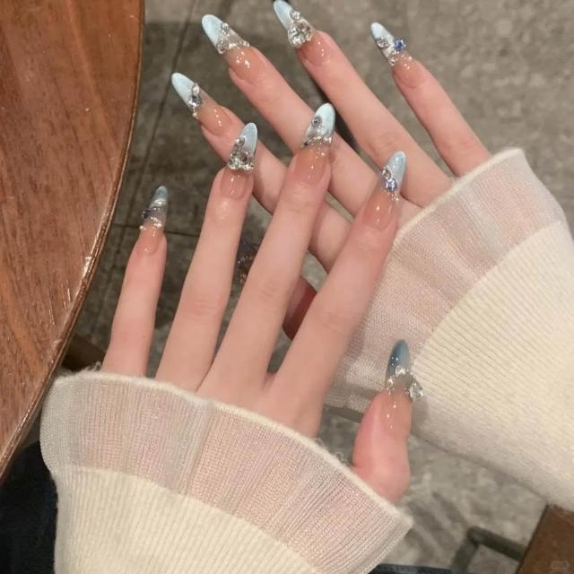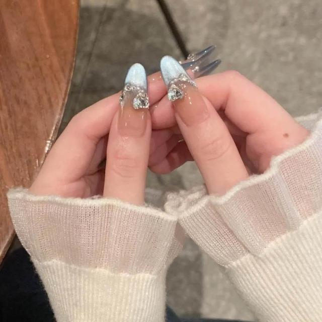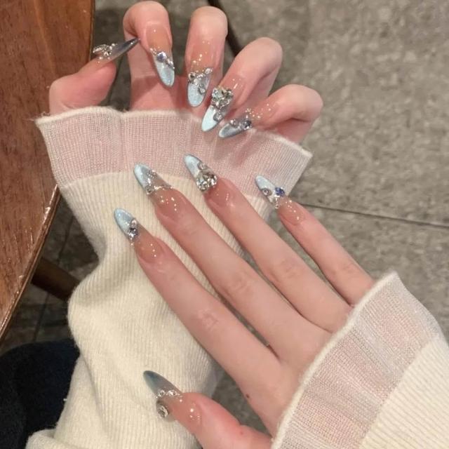 梵花 藍凝星河純手工氣質貓眼高級輕奢爆閃穿戴純欲氛圍法式美甲指甲貼