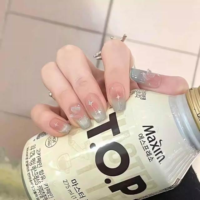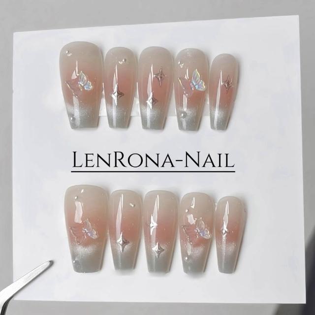 梵花 純手工穿戴美甲薄荷綠水光感貓眼美甲立體蝴蝶星芒鑲鑽純欲風美甲指甲貼