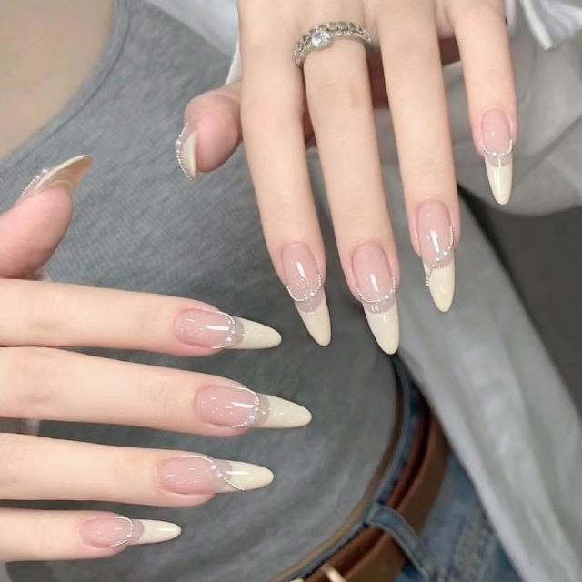 梵花 穿戴甲溫柔高級感氣質簡約奶油珍珠法式手工訂製美甲成品指甲貼片指甲貼