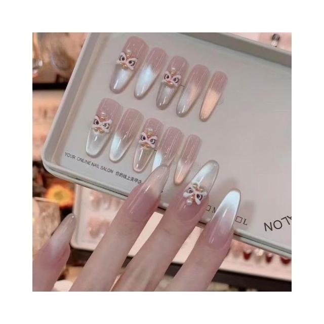 梵花 快樂醒獅美甲爆閃玻璃珠貓眼高級顯白氣質穿戴甲指甲貼