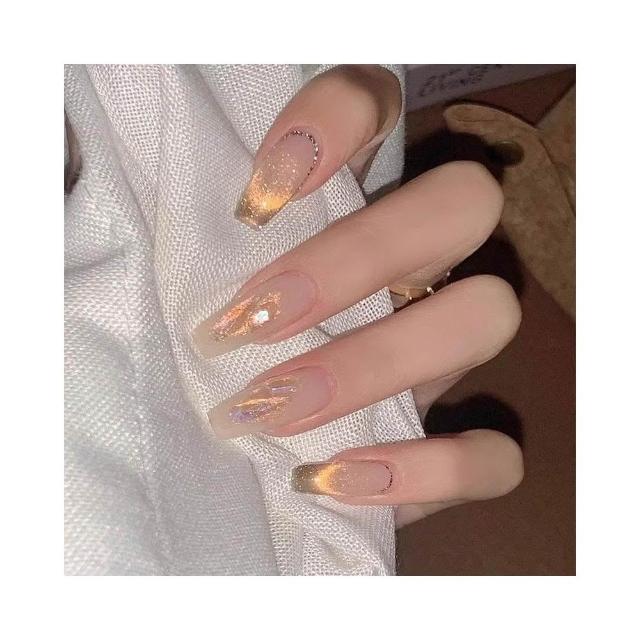 梵花 法式貓眼穿戴甲2023年全新輕奢爆閃鑽新娘美甲貼片裸色顯白可拆卸指甲貼