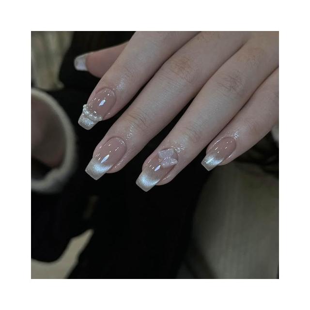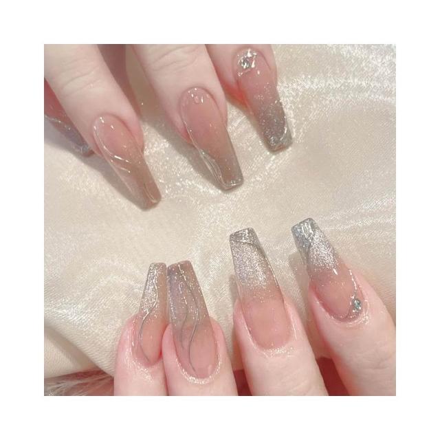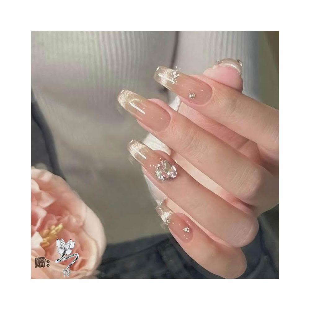 梵花 法式貓眼穿戴甲2023年全新輕奢爆閃鑽新娘美甲貼片裸色顯白可拆卸指甲貼