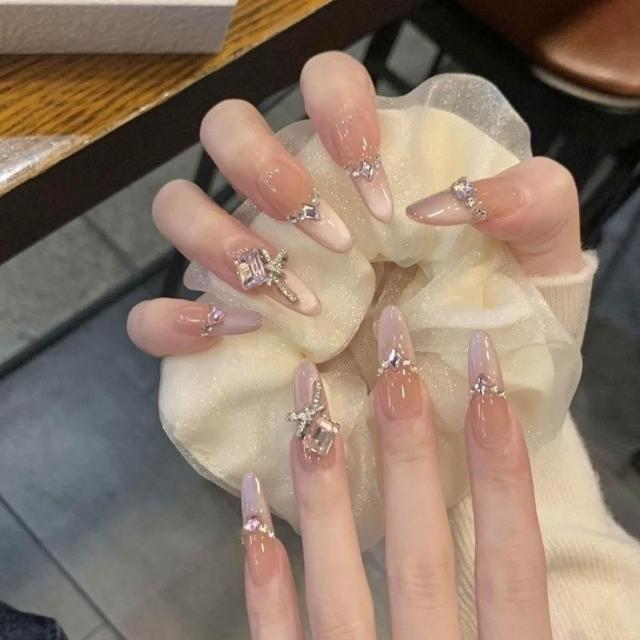 梵花 手工美甲穿戴甲新款粉紅貓眼顯白富家千金溫柔高級假指甲貼片指甲貼