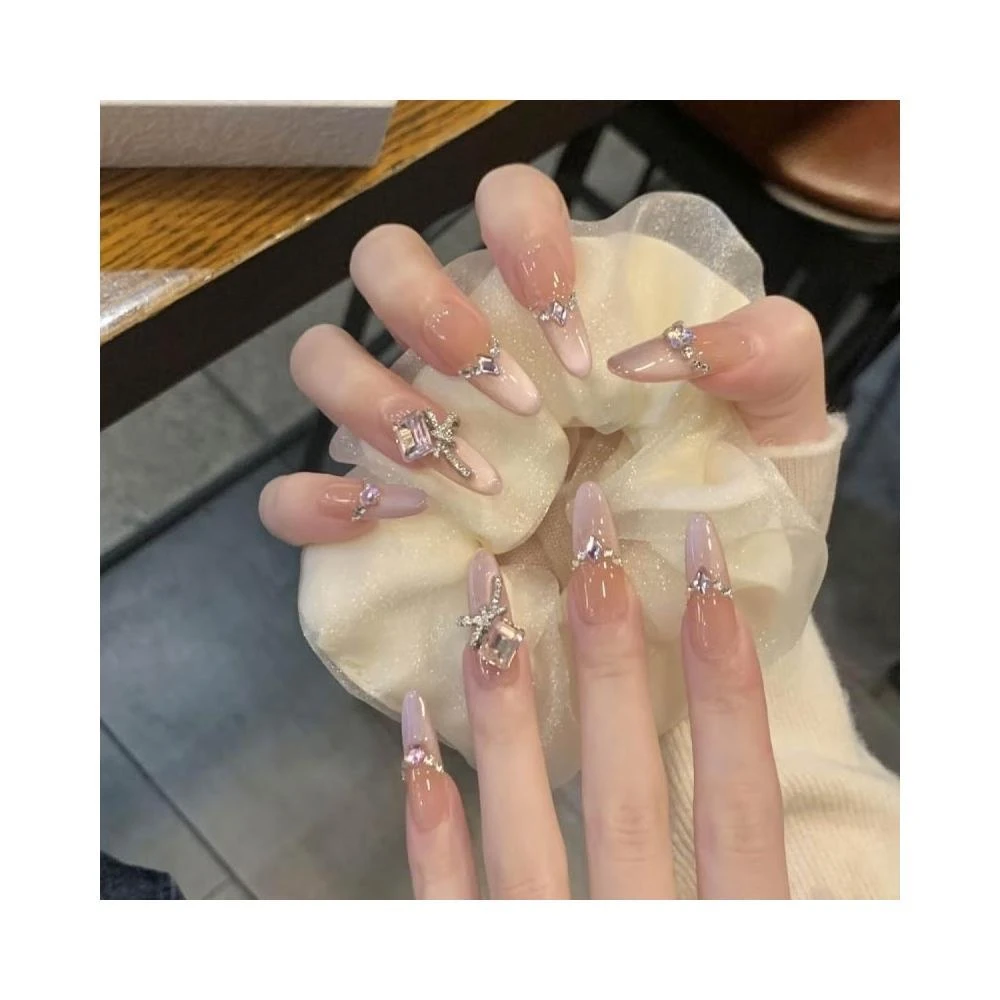 梵花 手工美甲穿戴甲新款粉紅貓眼顯白​​富家千金溫柔高級假指甲貼片指甲貼