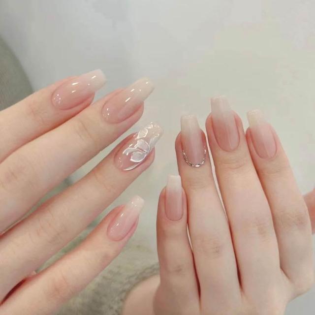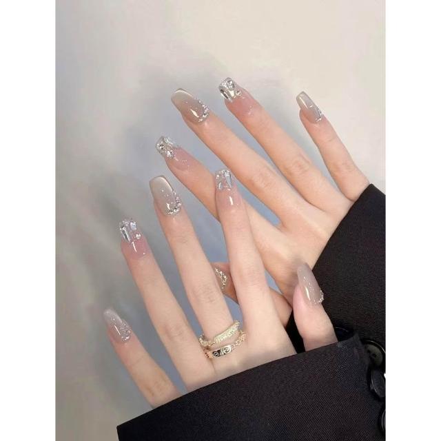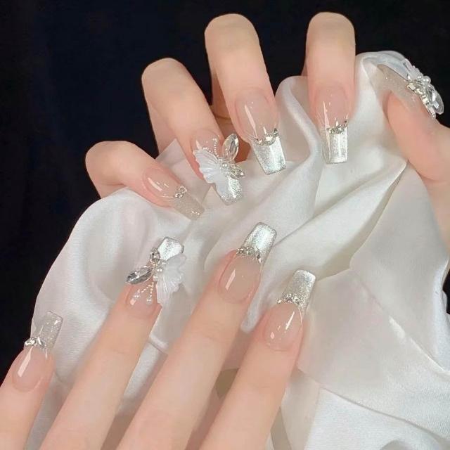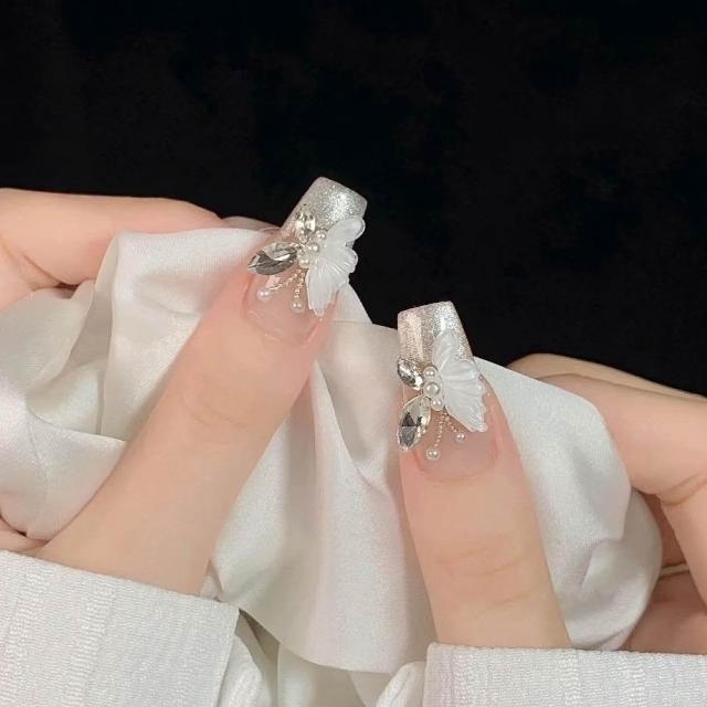 梵花 穿戴高級感氣質爆閃顯白白月光冰晶蝴蝶手工訂製美甲成品指甲貼片指甲貼