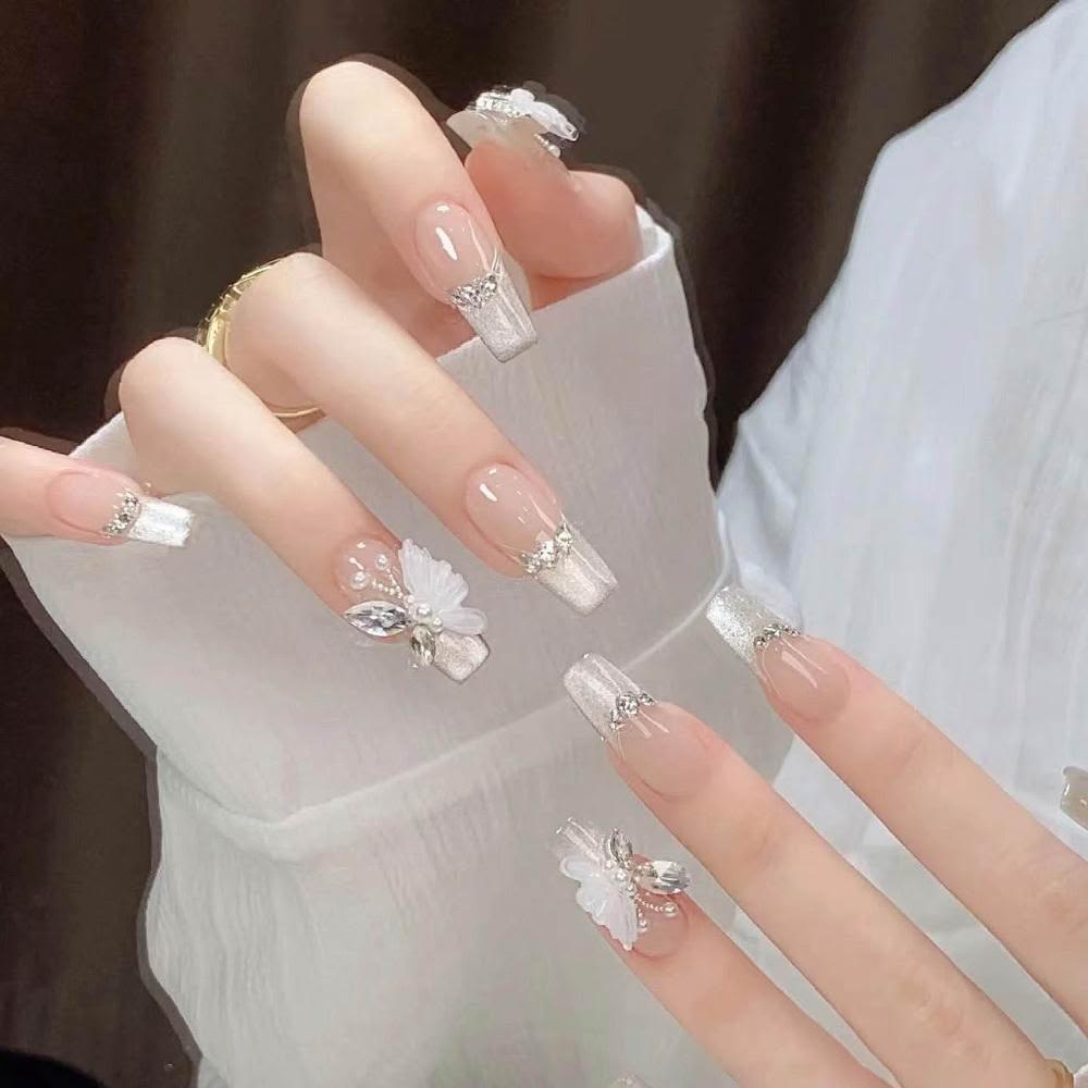梵花 穿戴高級感氣質爆閃顯白白月光冰晶蝴蝶手工訂製美甲成品指甲貼片指甲貼