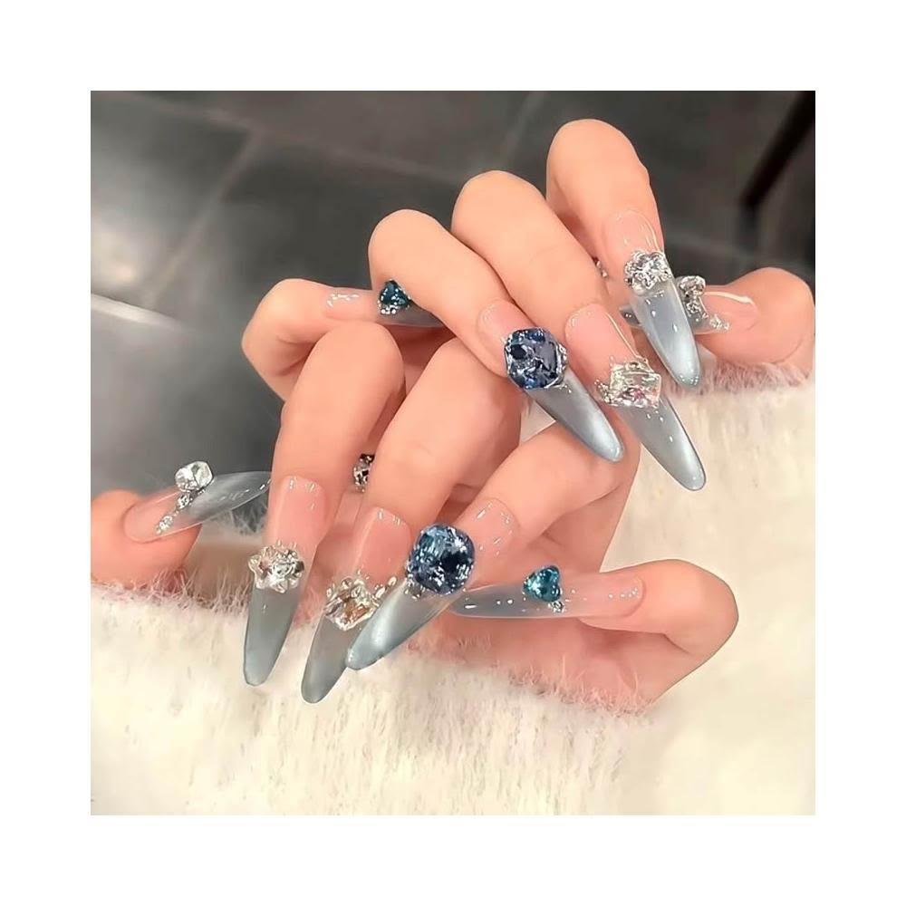 梵花 藍色多瑙河清透淺藍法式貓眼純慾ins高級感穿戴甲顯白藍系美甲指甲貼