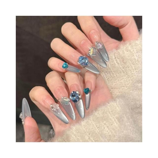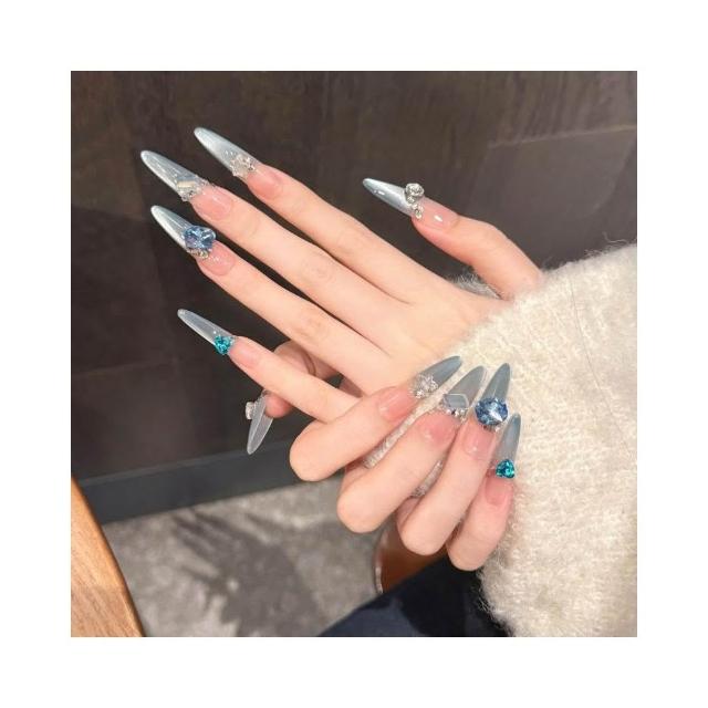 梵花 藍色多瑙河清透淺藍法式貓眼純慾ins高級感穿戴甲顯白藍系美甲指甲貼