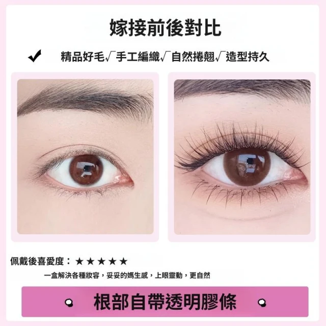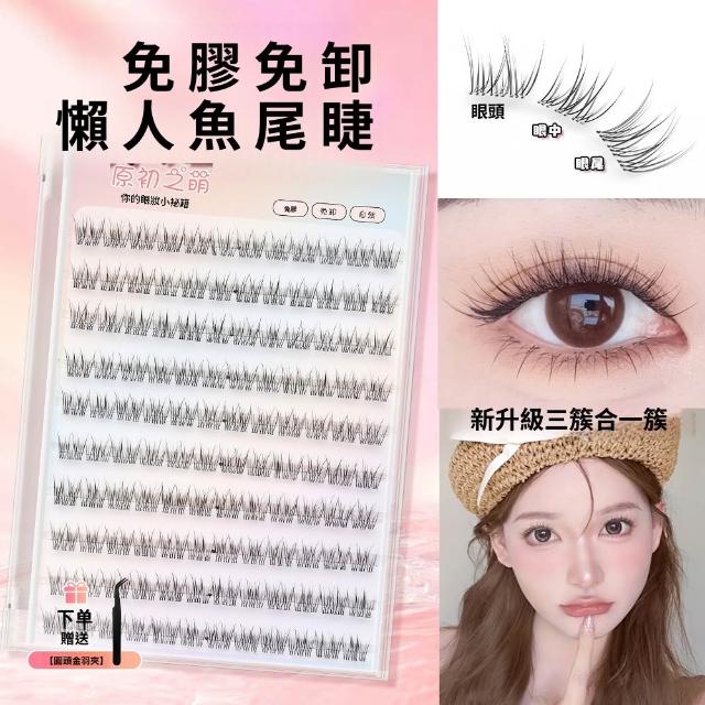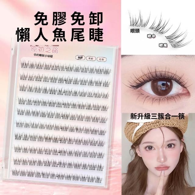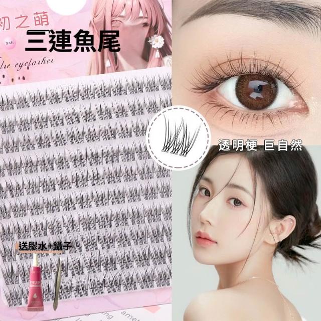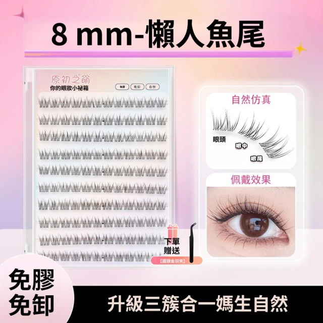 梵花 短版8-9-10mm免膠魚尾假睫毛女自然模擬自黏分段透明細梗媽生感