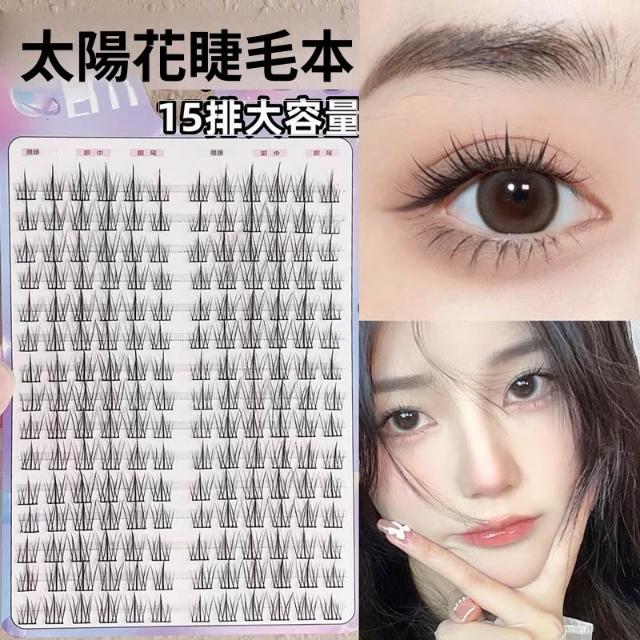 梵花 懶人系太陽花假睫毛書女自然模擬三部曲單簇分段式自黏眼睫毛自然