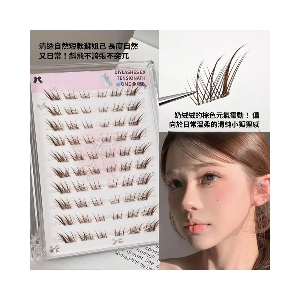 梵花 短版棕色狐系免膠假睫毛蘇妲己斜飛分段式單簇新手自黏化妝師推薦