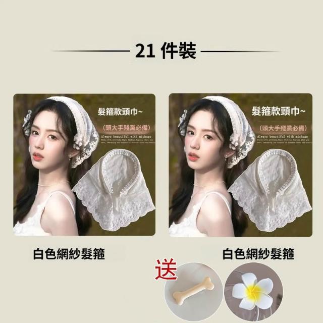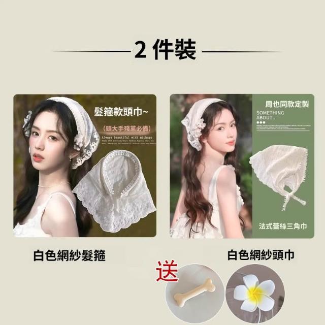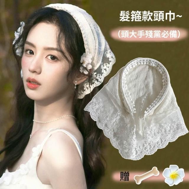 梵花 周也同款蕾絲頭巾髮箍女夏季出遊拍照發卡氛圍感壓發頭箍百搭頭飾