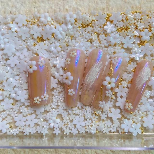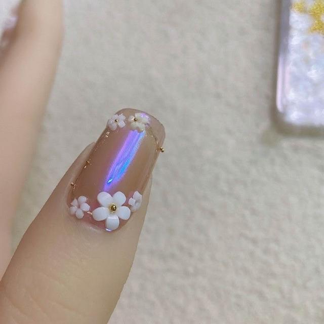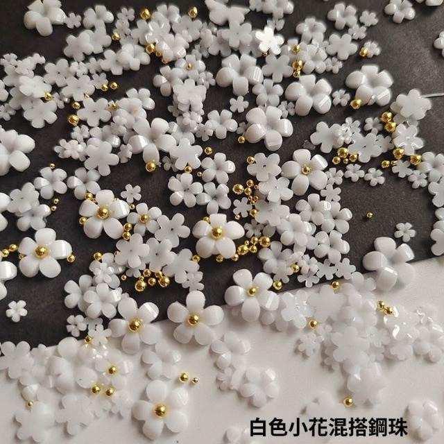 梵花 白色五瓣花指甲可愛網紅爆款美甲小花飾品鋼珠點綴小花美甲鑽