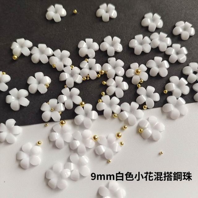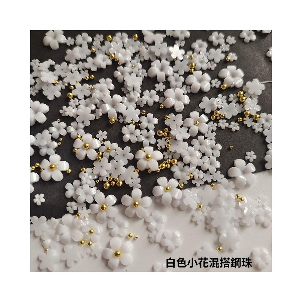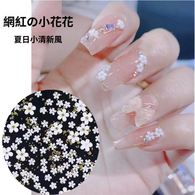梵花 白色五瓣花指甲可愛網紅爆款美甲小花飾品鋼珠點綴小花美甲鑽
