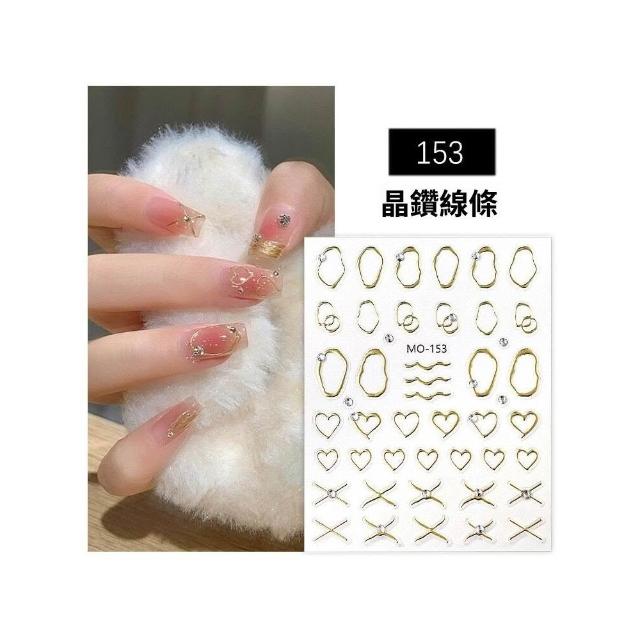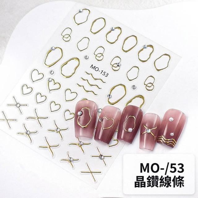 梵花 美甲晶鑽線條貼紙浮雕手繪燙金銀色金屬框鏤空愛心指甲貼片裝飾品