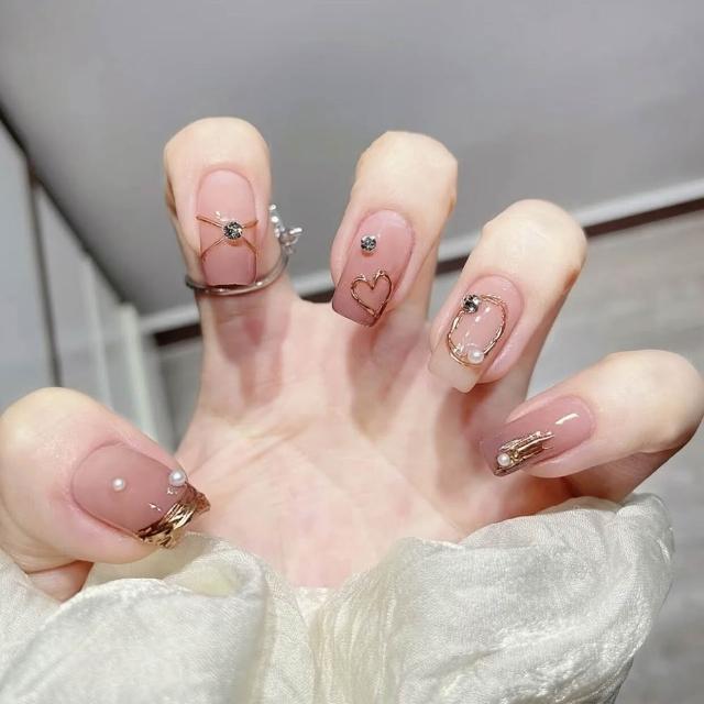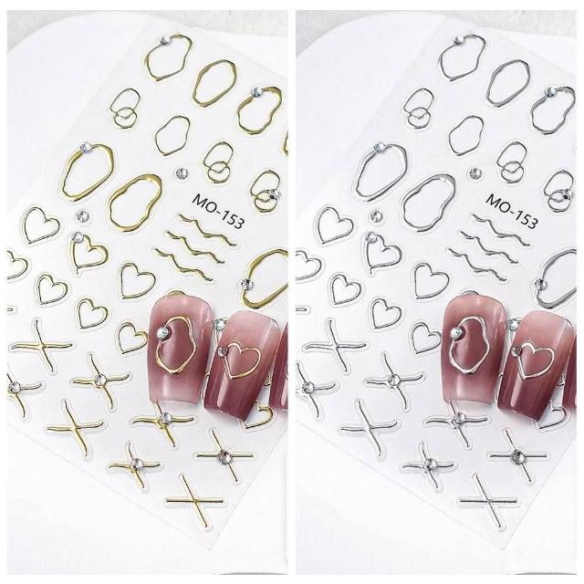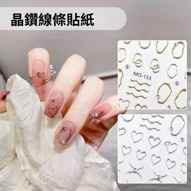 梵花 美甲晶鑽線條貼紙浮雕手繪燙金銀色金屬框鏤空愛心指甲貼片裝飾品