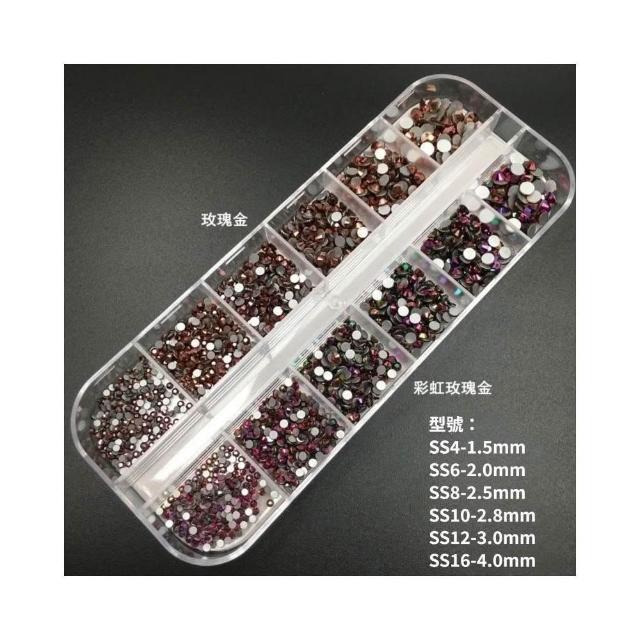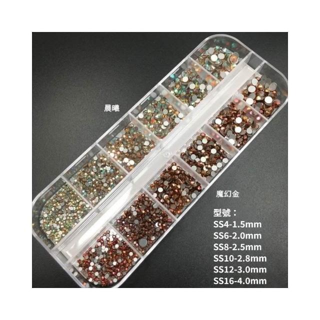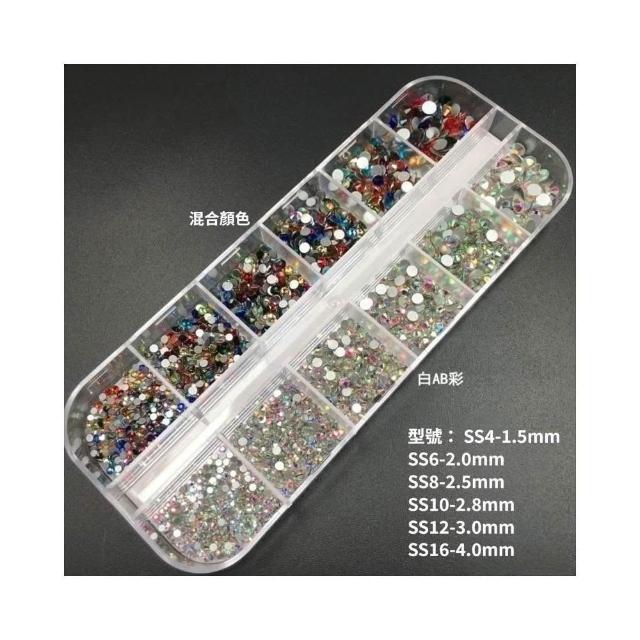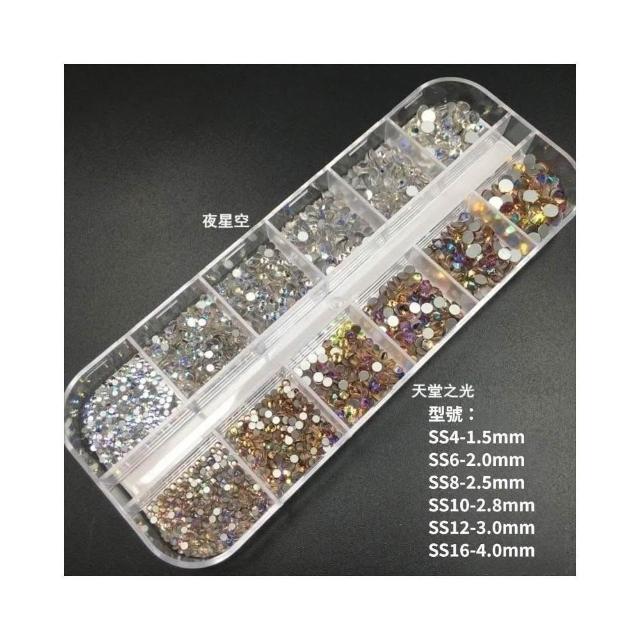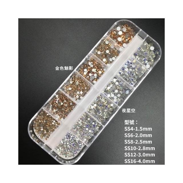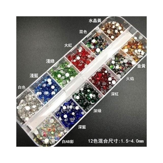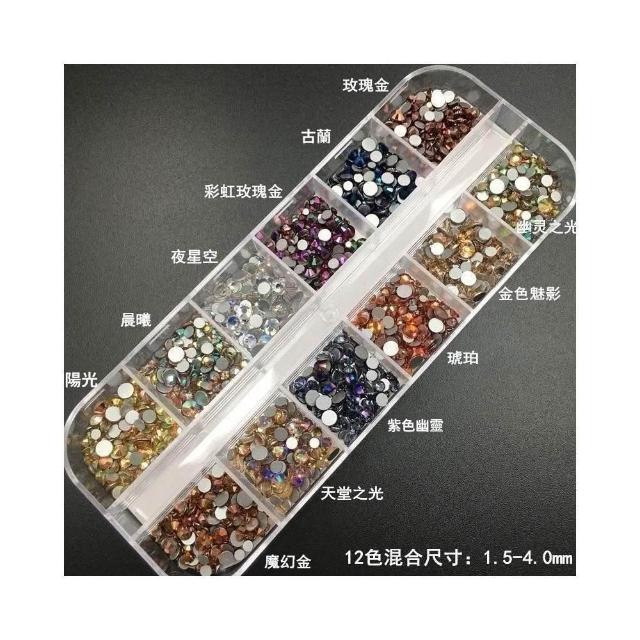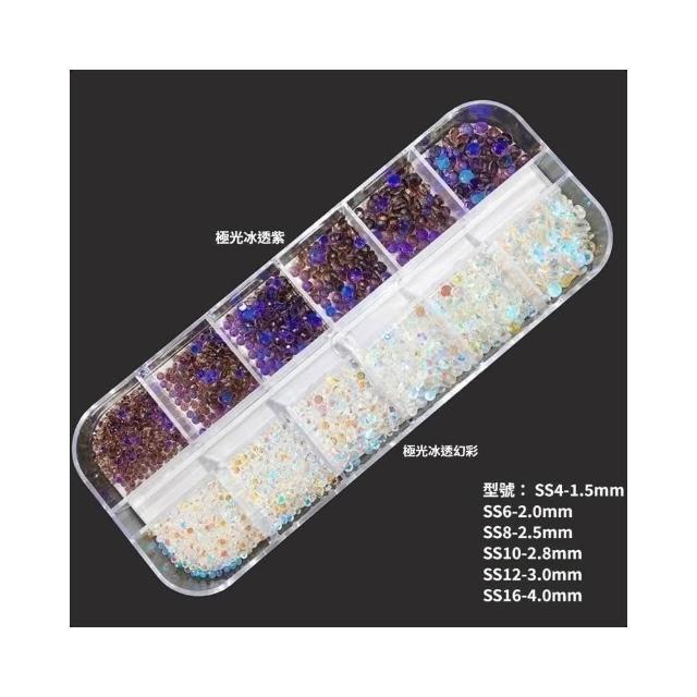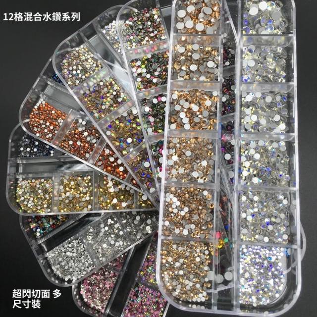 梵花 12格平底彩鑽盒裝網紅多型號多尺寸大小混裝超閃指甲貼DIY美甲鑽