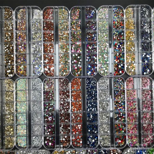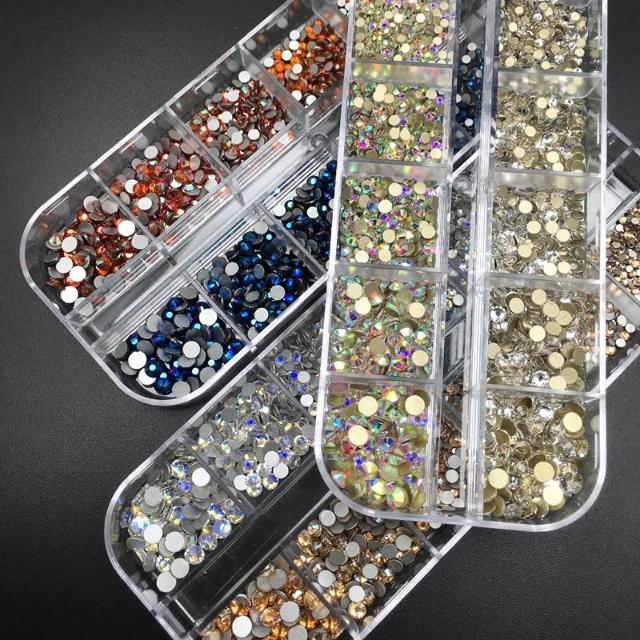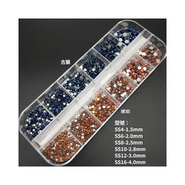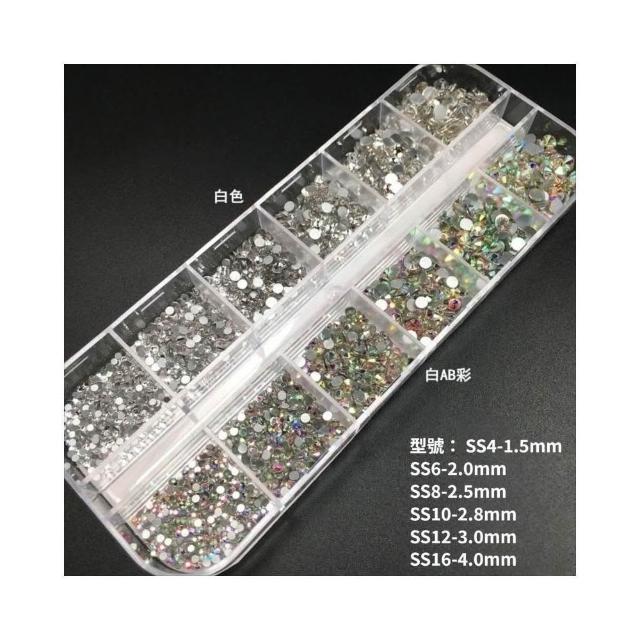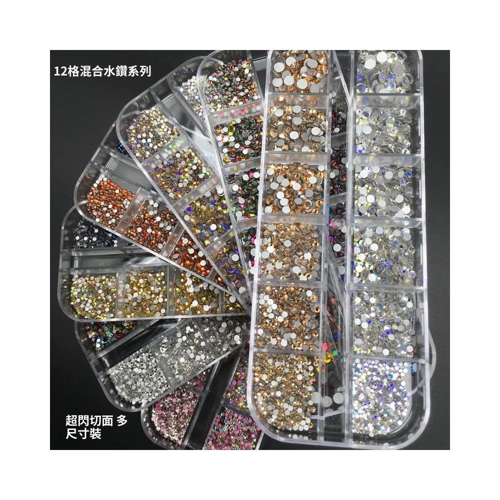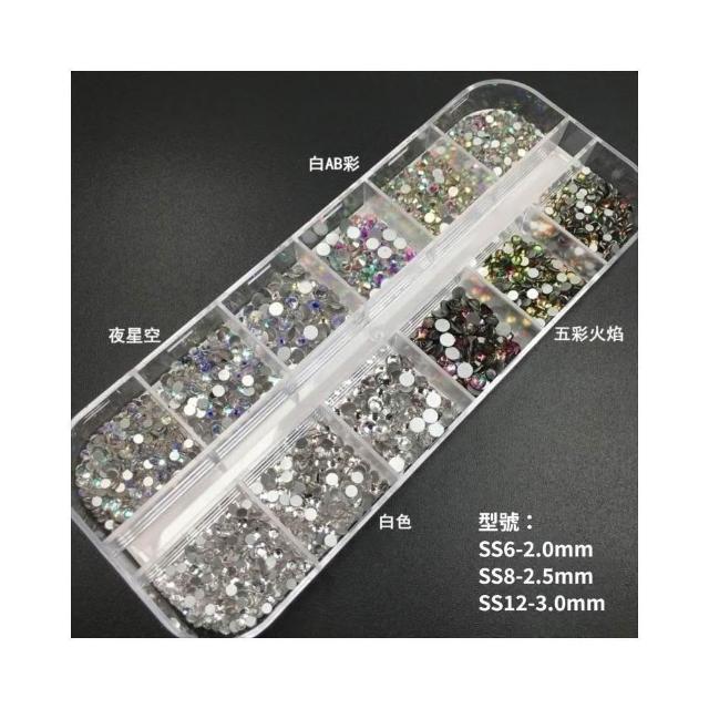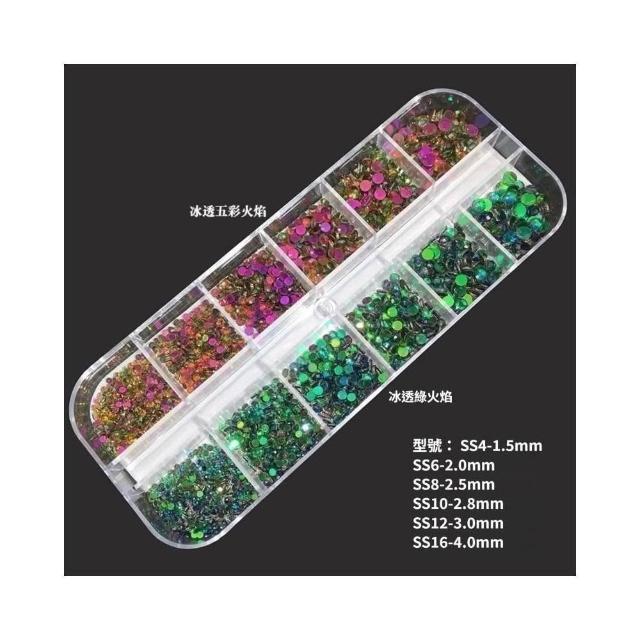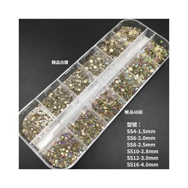 梵花 12格平底彩鑽盒裝網紅多型號多尺寸大小混裝超閃指甲貼DIY美甲鑽