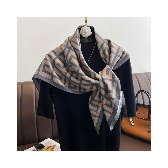 梵花 氣質藏青米色紅色順滑絲巾大方巾90cm百搭方巾披肩春秋新款圍巾