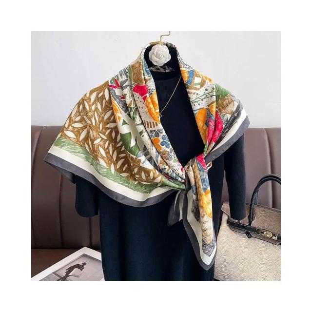 梵花 氣質藏青米色紅色順滑絲巾大方巾90cm百搭方巾披肩春秋新款圍巾