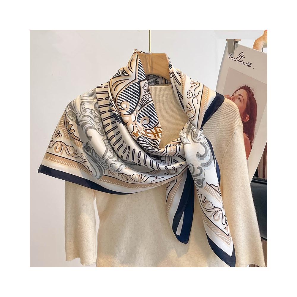 梵花 氣質藏青米色紅色順滑絲巾大方巾90cm百搭方巾披肩春秋新款圍巾