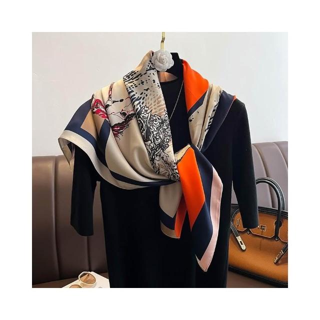 梵花 氣質藏青米色紅色順滑絲巾大方巾90cm百搭方巾披肩春秋新款圍巾