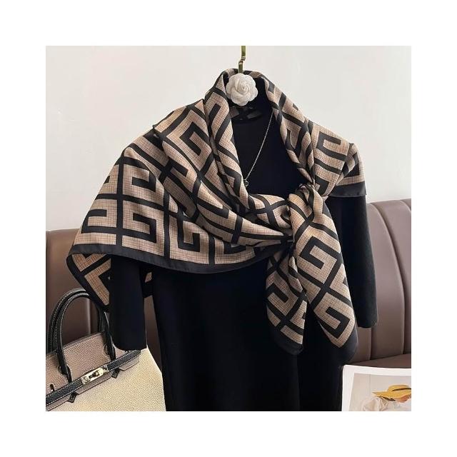 梵花 氣質藏青米色紅色順滑絲巾大方巾90cm百搭方巾披肩春秋新款圍巾