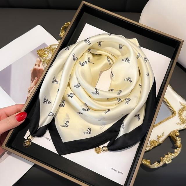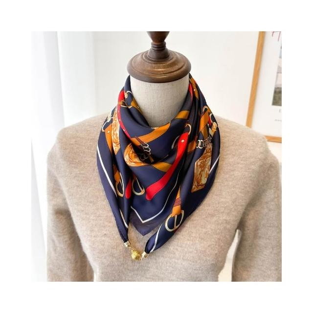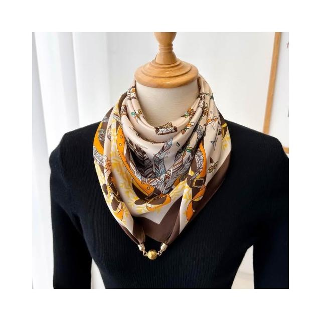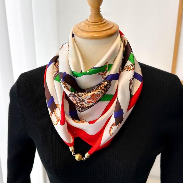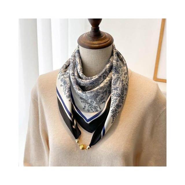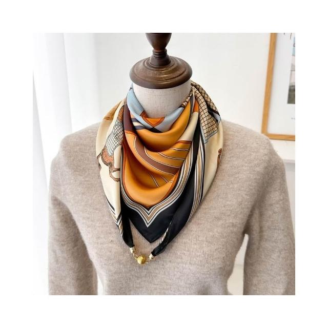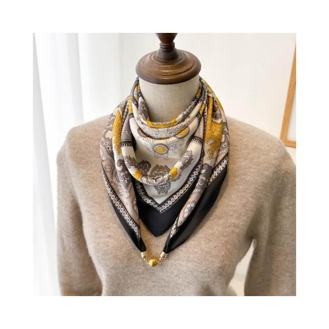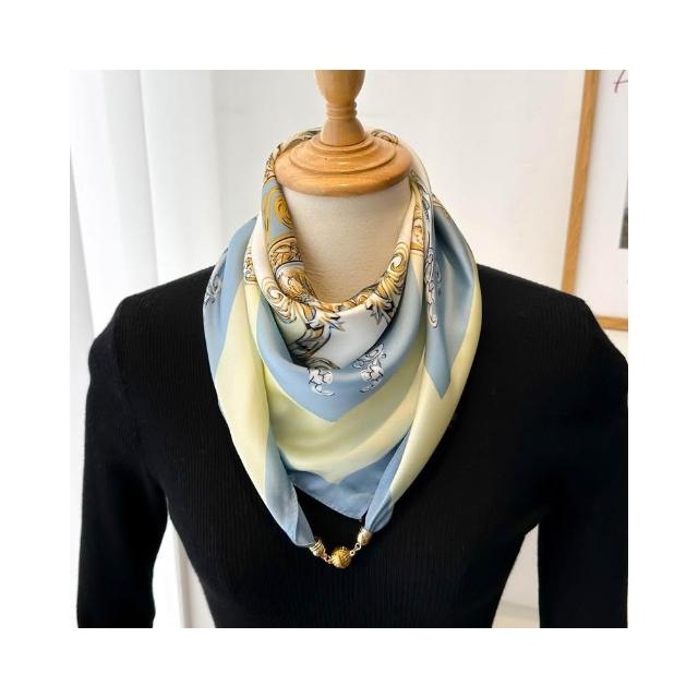 梵花 磁吸扣三角小方巾絲巾女春秋夏季護頸防曬脖子薄紗巾圍巾70x70