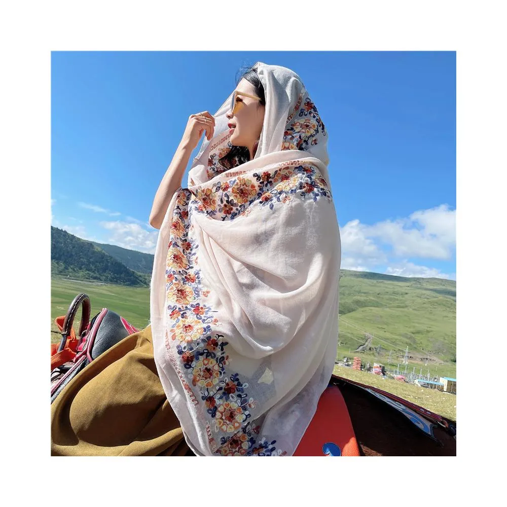 梵花 圍巾女夏季沙漠旅遊防曬披肩民族風茶卡鹽湖絲巾時尚海邊紗巾頭巾