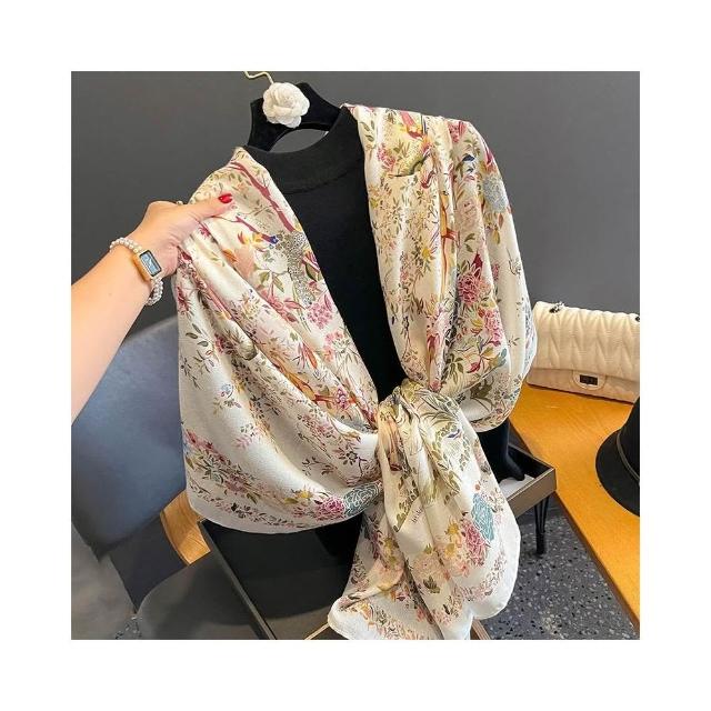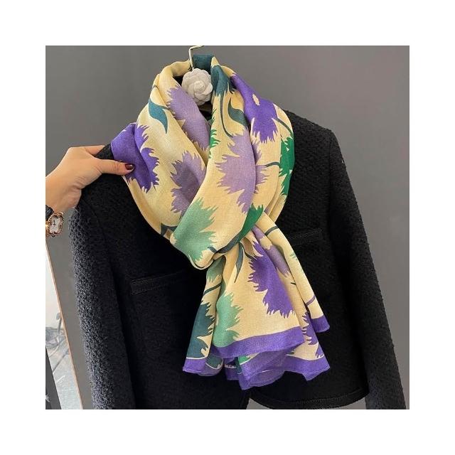 梵花 新款韓版小花棉麻圍巾女百搭長披肩外搭薄款冬季紗巾絲巾女