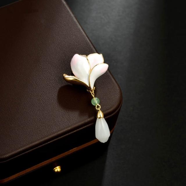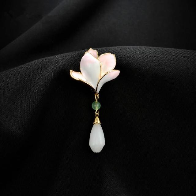梵花 玉蘭花胸針旗袍壓襟高級感國風精緻胸花西裝別針新中式漢服配件女