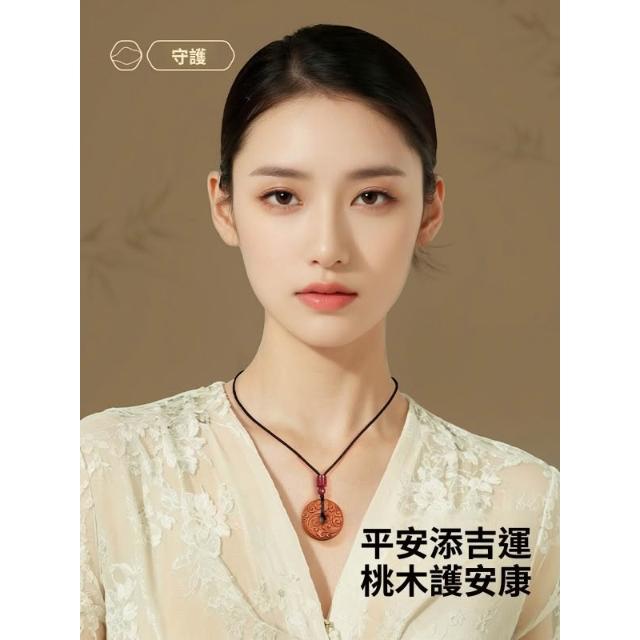 梵花 天然桃木平安扣吊墜男女平安護身符掛件項鍊