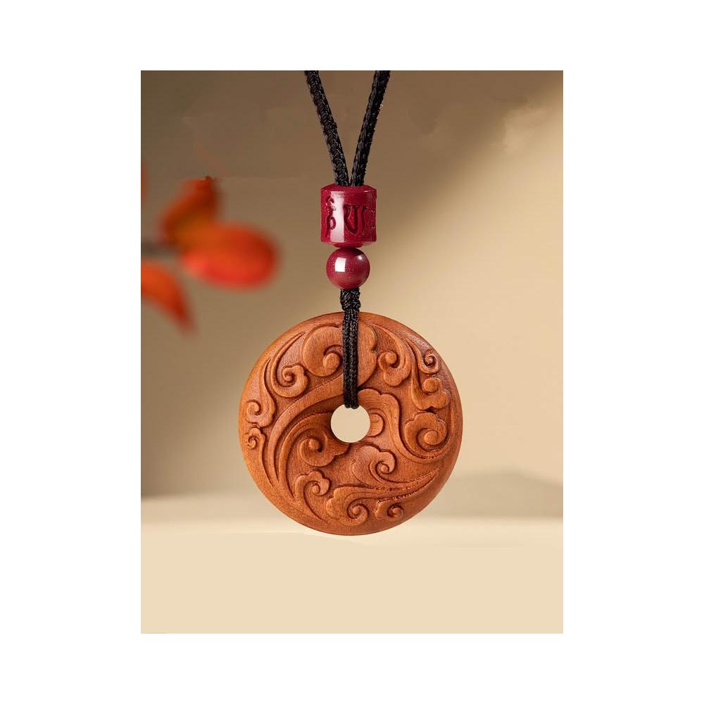 梵花 天然桃木平安扣吊墜男女平安護身符掛件項鍊