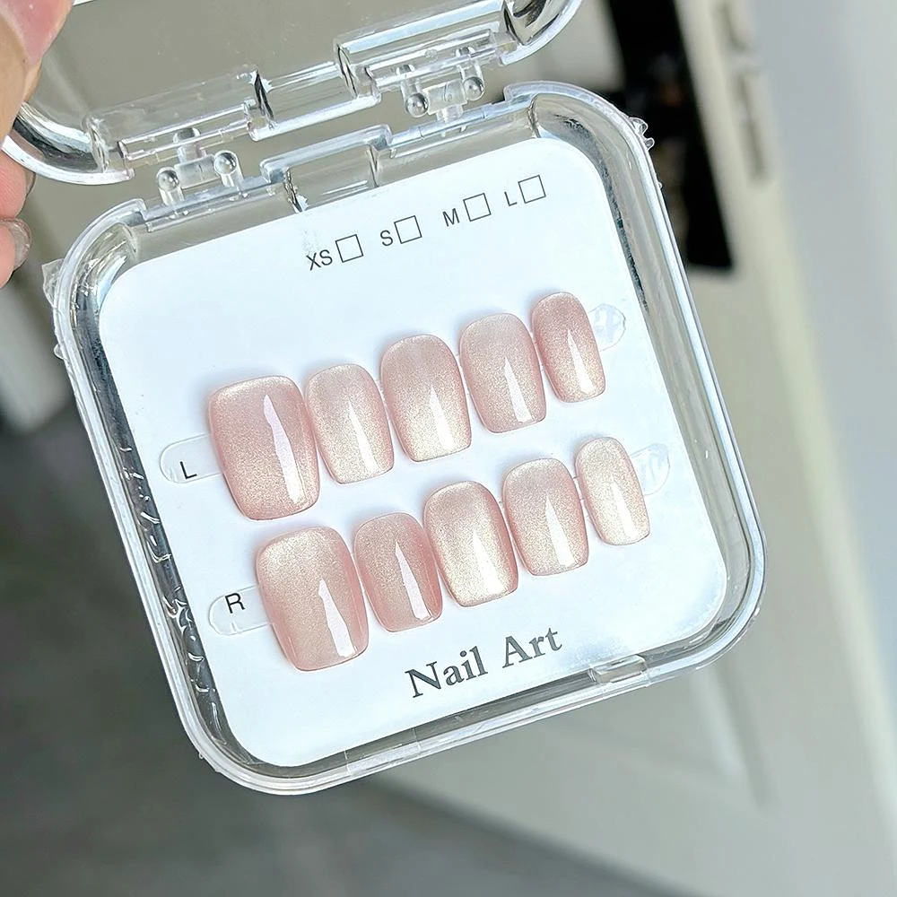 梵花 全新純手工穿戴甲貓眼短版美甲成品假指甲貼片豆豆甲短圓裸色指甲貼