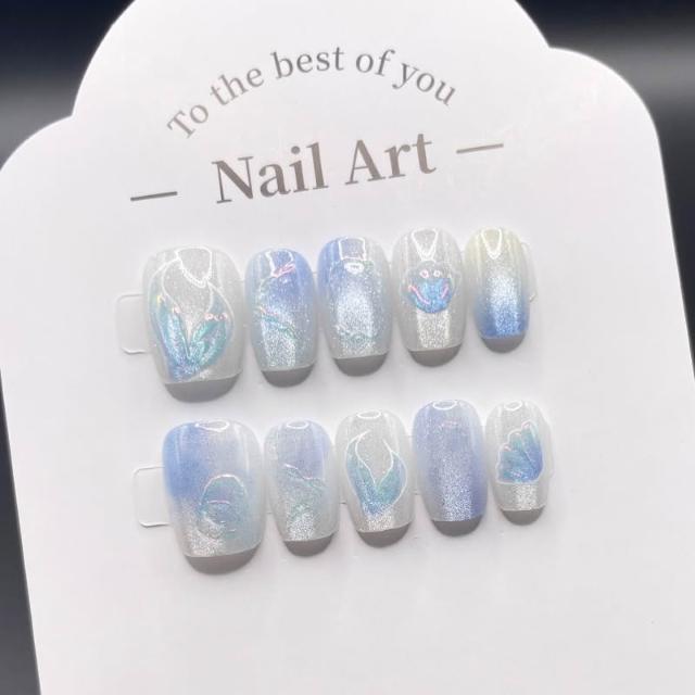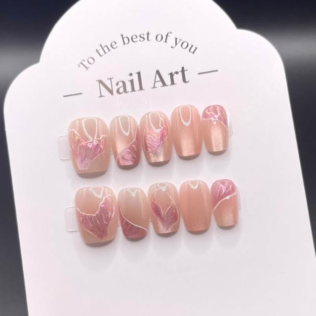 梵花 輕奢高級感穿戴式甲新品純手工假指甲貼片貓眼美甲成品顯白短款指甲貼