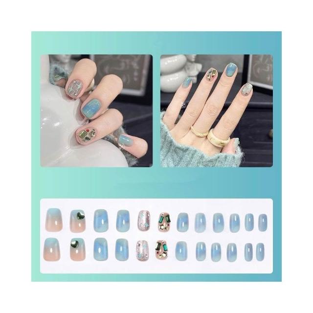 梵花 穿戴甲短款純色鴛鴦跳色馬卡龍色糖果色美甲貼片成品可用指甲貼