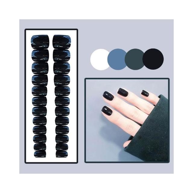 梵花 穿戴甲純色黑色短圓頭方頭美甲貼片成品甜酷辣妹單色假指甲指甲貼