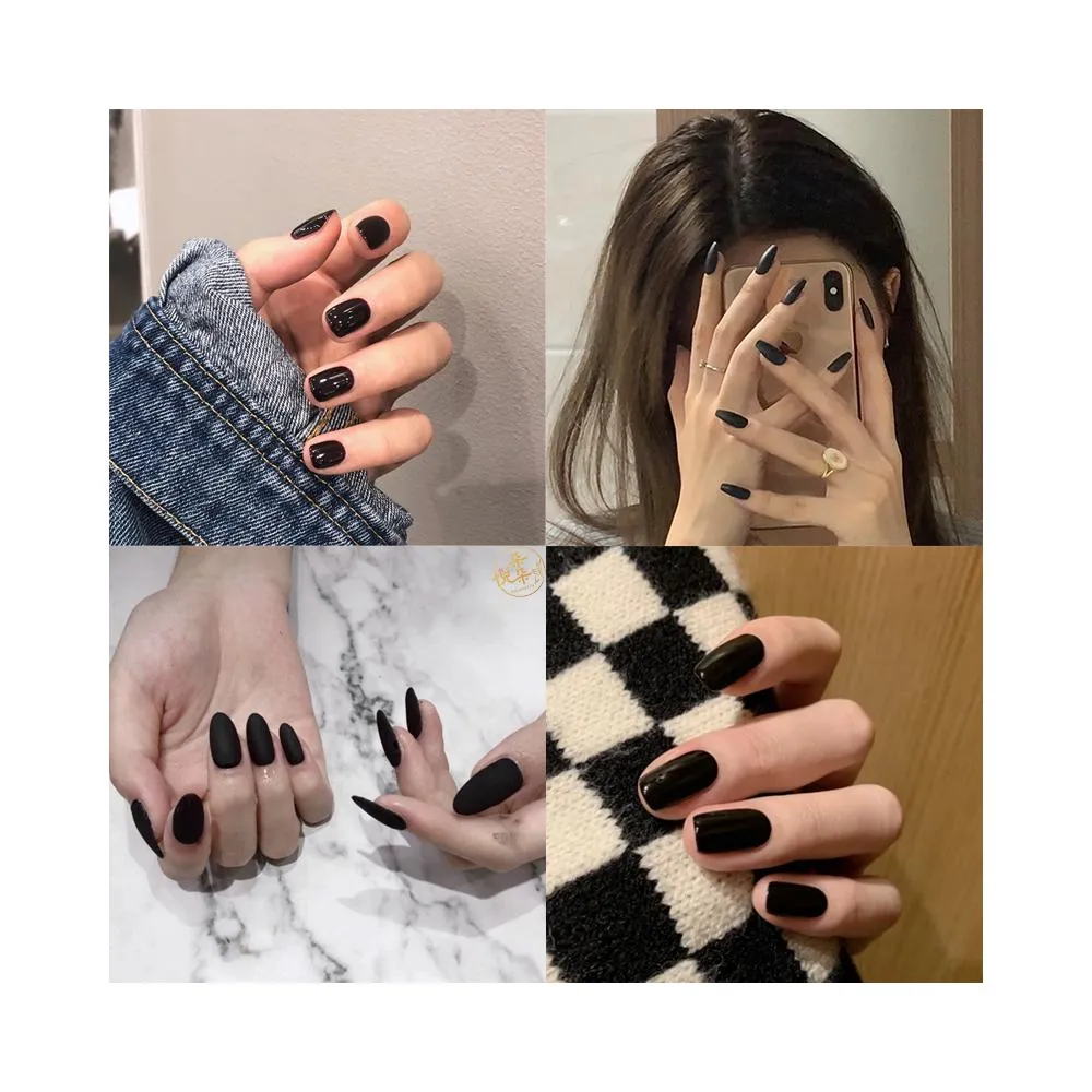 梵花 穿戴甲純色黑色短圓頭方頭美甲貼片成品甜酷辣妹單色假指甲指甲貼