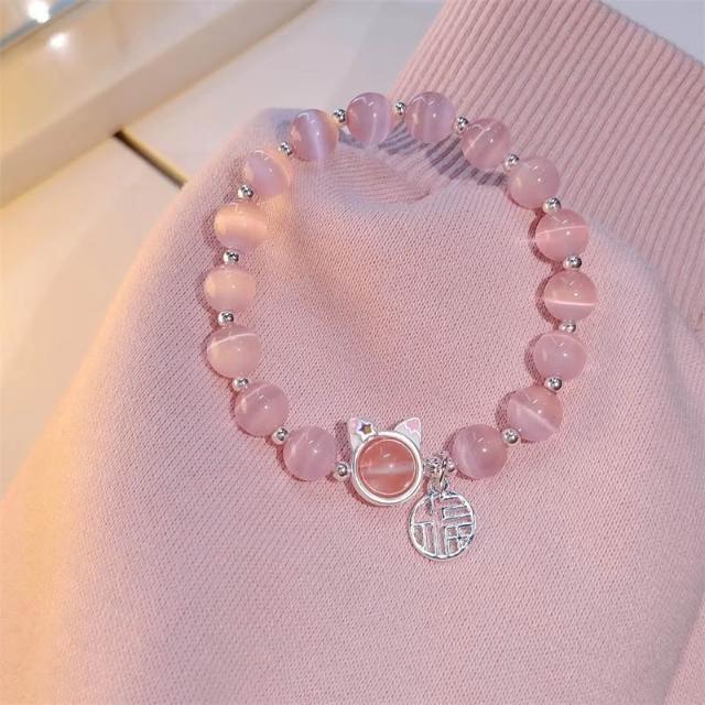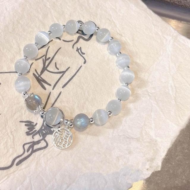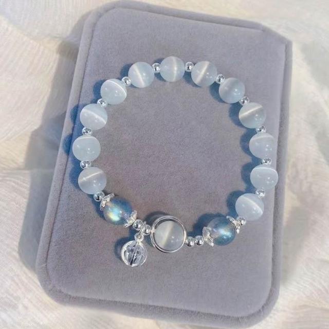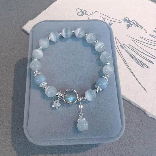 梵花 蝴蝶貓眼石手鍊輕奢小眾設計海寶藍月光石水晶手串閨蜜送女友禮物手鏈