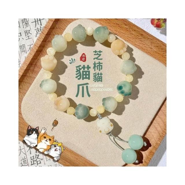 梵花 小青檸貓爪菩提子手串炭燒貓咪白玉菩提根手持女盤玩文玩佛珠手鍊