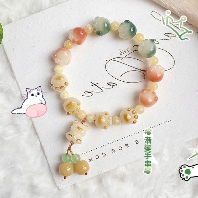 梵花 小青檸貓爪菩提子手串炭燒貓咪白玉菩提根手持女盤玩文玩佛珠手鍊