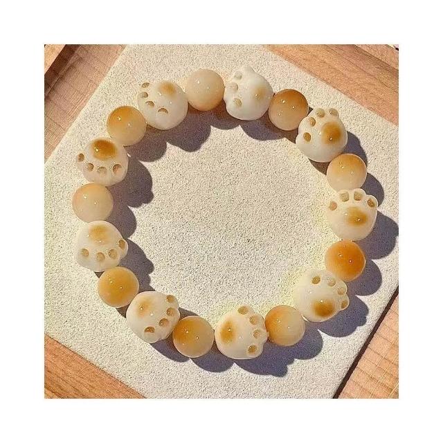 梵花 小青檸貓爪菩提子手串炭燒貓咪白玉菩提根手持女盤玩文玩佛珠手鍊