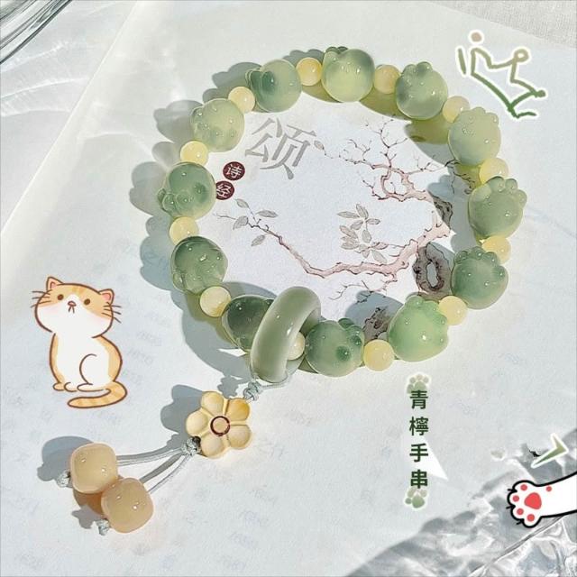 梵花 小青檸貓爪菩提子手串炭燒貓咪白玉菩提根手持女盤玩文玩佛珠手鍊