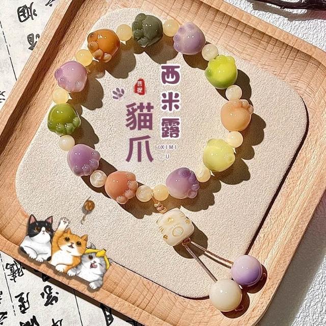 梵花 小青檸貓爪菩提子手串炭燒貓咪白玉菩提根手持女盤玩文玩佛珠手鍊