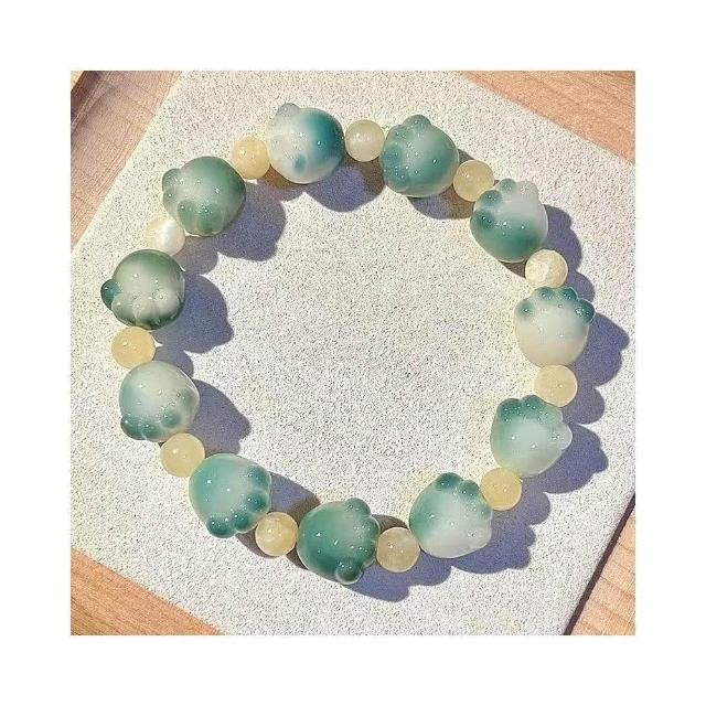 梵花 小青檸貓爪菩提子手串炭燒貓咪白玉菩提根手持女盤玩文玩佛珠手鍊